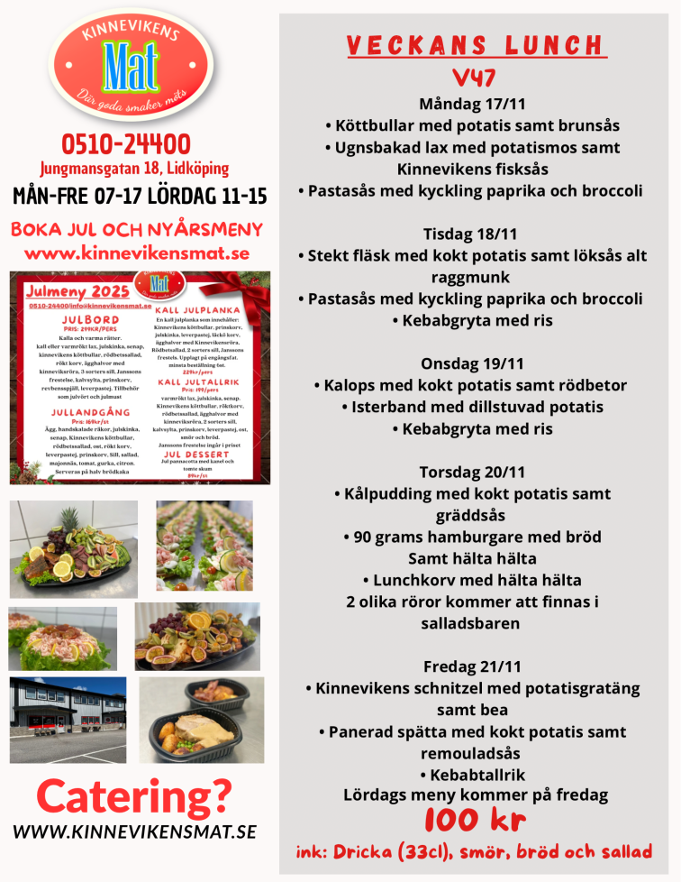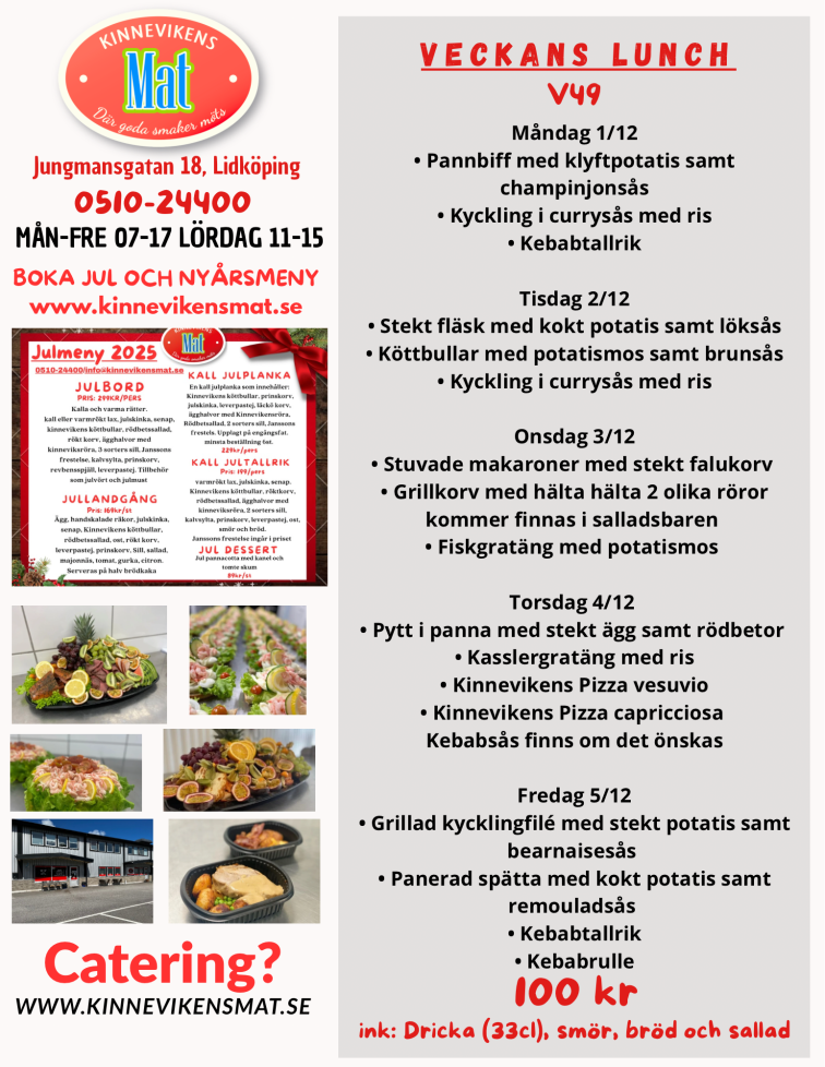Kinnevikens Mat AB - Jungmansgatan 18 - 531 40 Lidköping - Tel. 0510-244 00 - info (a) kinnevikensmat.se